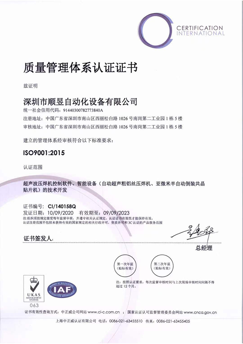 深圳市順昱自動化設(shè)備有限公司成立于2005年。“創(chuàng)唯星”是順昱公司的品牌。是深圳認(rèn)定的一家高新技術(shù)民營企業(yè),主要研發(fā)生產(chǎn)自動超聲波粗鋁絲壓焊機(jī)、鋁帶鍵合機(jī)、超聲波金絲球焊機(jī)、超聲波鋁絲壓焊機(jī)等半導(dǎo)體、鋰電池封裝設(shè)備。公司是深圳市認(rèn)定的高新技術(shù)企業(yè)、深圳市民營科技企業(yè)、深圳市LED產(chǎn)業(yè)聯(lián)合會理事單位,榮獲了廣東省名優(yōu)產(chǎn)品榮譽(yù)證書、是深圳市半導(dǎo)體照明產(chǎn)業(yè)發(fā)展促進(jìn)會會員單位。公司注冊資金500萬元,現(xiàn)有辦公和生產(chǎn)場地總面積1300多平方米,擁有一支高素質(zhì)20多年經(jīng)驗(yàn)團(tuán)隊(duì),其中本科及大專以上學(xué)歷員工占比達(dá)90%。
